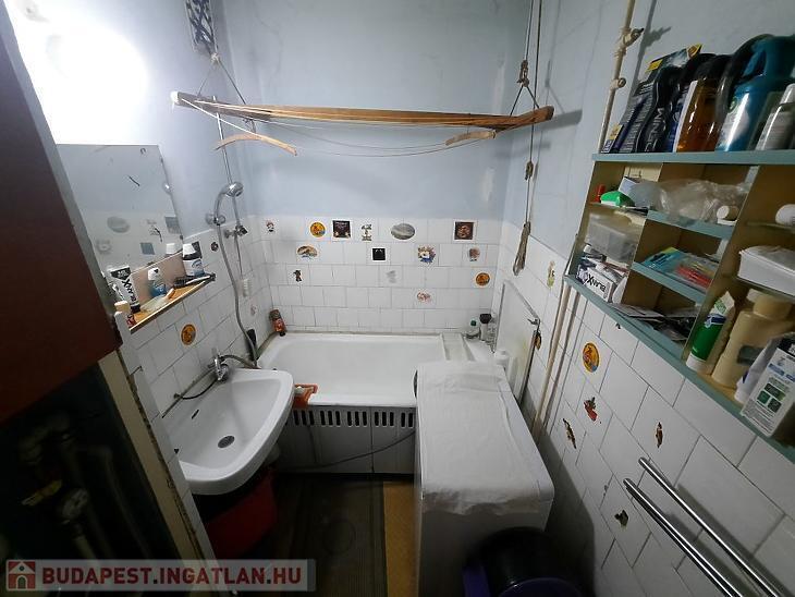 A fürdőszoba és a WC egy helyiségbe nyílik, kádas, felújítást igényel.
