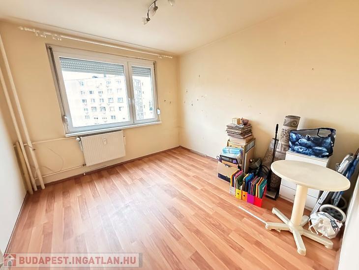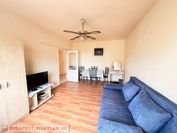 Eladó Újpalotán, a Páskomliget utcában egy 8. emeleti, panorámás kilátással rendelkező, 47 m²-es, két szobás lakás.