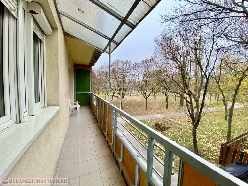XV. kerületben, Nyírpalota úton, de bent a parkban, 7 emeletes, szigetelt panelház 1. emeletén eladó egy 35 m2-es, jó állapotú, 1+1 félszobás, lakás, 7.3 m2-es parkra néző erkéllyel.