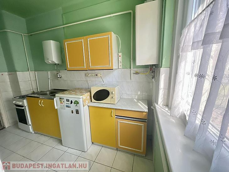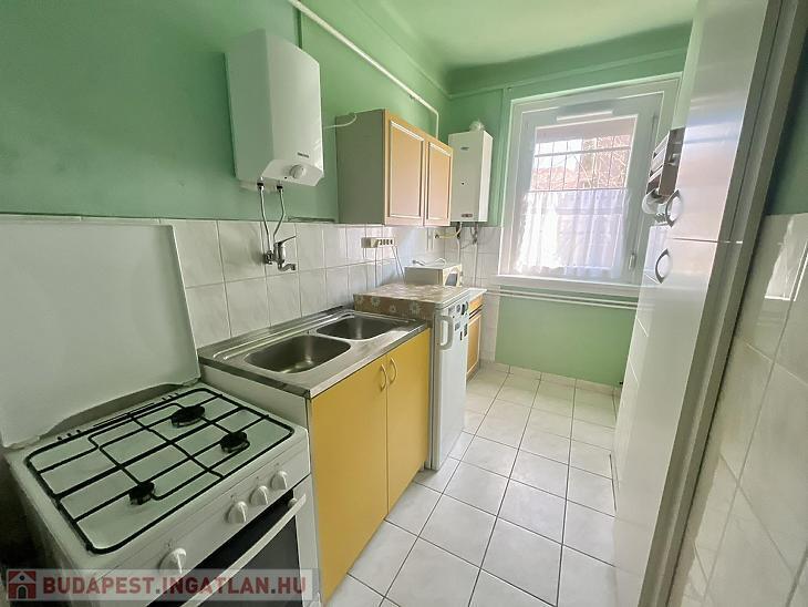 Előszoba, L alakú étkezős konyha, nappali, hálószoba, kádas fürdőszoba, kamra áll rendelkezésre. A nyílászárók 5 éve műanyag, hőszigetelt ablakokra és biztonsági ajtóra lettek cserélve. Az ablakok redőnnyel és ráccsal ellátva, egy része szúnyoghálós is. A villanyvezetékeket rézre váltották. A fűtés gázcirkóval biztosított lapradiátorokon keresztül. Tartozik a lakáshoz egy 4 nm-es zárható tároló. A szobák ablakai a parkosított udvarra nyílnak.