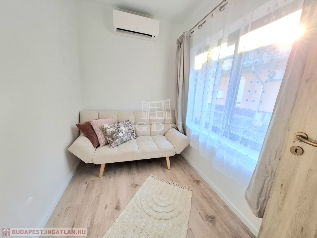 A 42 négyzetméteres, földszinti ingatlan 1+1 félszobából áll, ideális választás lehet kisebb családok számára vagy befektetési célból.