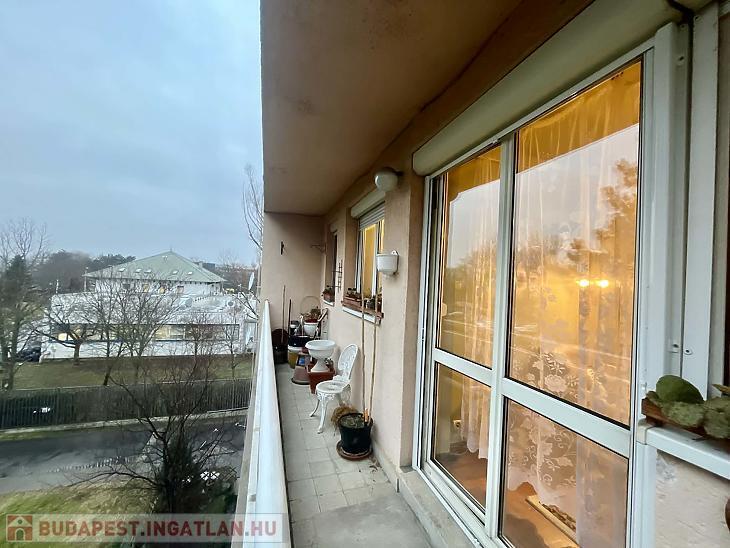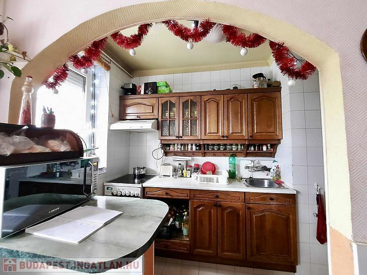 Budapest XV. kerületében, Újpalotán eladó 48 nm-es, másfél szobás, 2. emeleti társasházi téglalakás 8 nm-es loggiával.