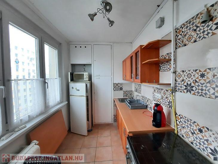 A helyiségek burkolatai igényes állapotúak: a közlekedő és a konyha járólapos, a szobákban laminált parketta található. Műanyag nyílászárókkal rendelkezik. A lakás komfortját hűtő-fűtő klíma is növeli. A fűtést korábbi típusú, de egyedi mérős radiátorok biztosítják, ami gazdaságos fenntartást eredményez. A tágas erkély csendes, zöld parkra néz, így tökéletes helyszín a reggeli kávéhoz vagy egy esti pihenéshez. A konyhabútor a vételár része, a többi bútor megegyezés tárgyát képezi.