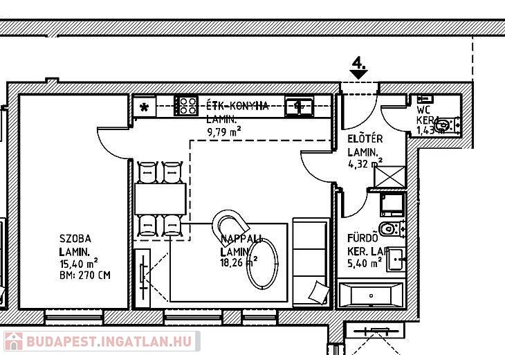 Az ár tartalmazza a burkolatok, szerelvények és szaniterek beépítését, az anyag árat nem.