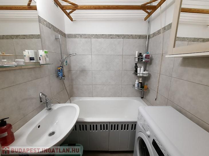 A közlekedő, konyha, fürdőszoba+ wc járólapos, a szobákban laminált parketta található. A fürdőszoba 2 éve felújított, a konyhabútor megkímélt állapotú, és a vételár részét képezi a tűzhellyel és a sütővel. A lakásban két darab hűtő-fűtő klíma gondoskodik a kellemes hőmérsékletről télen-nyáron. A lakás tehermentes!