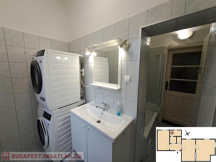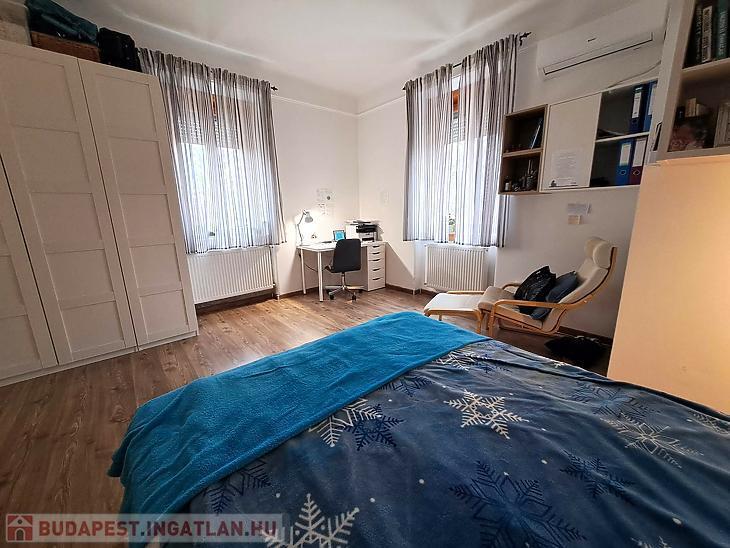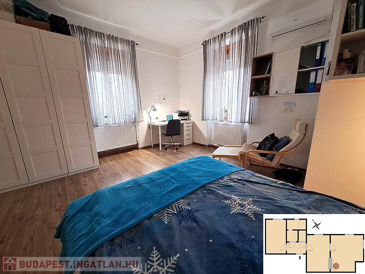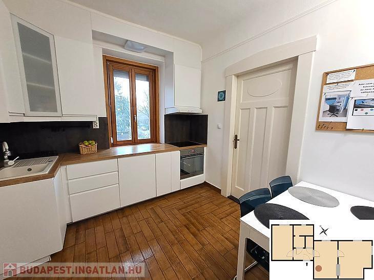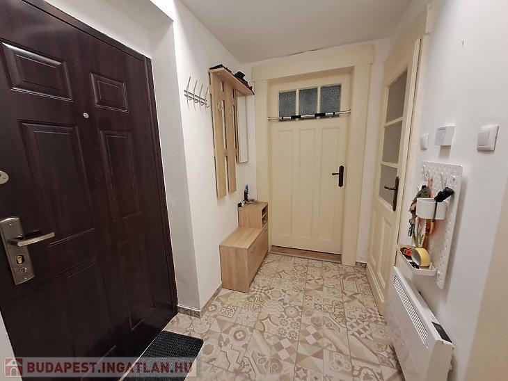 A lakásba belépve elsőként az előszobába térünk, ahonnan nyílik egy hálószoba, a kádas fürdő, külön nyíló wc és az étkezős konyha, ahonnan tovább juthatunk a nagyobb hálószobába. A lakás néhány éve részleges felújításon esett át. Új burkolat a szobákban és az előszobában, többségében ki lettek cserélve a szaniterek, új IKEA konyhabútor, konyhai gépesítés és egy konyhai víztisztító lett beépítve, ami a csapvíznél és az ásványvíznél tisztább, egészségesebb ivóvízről gondoskodik. Az elektromos hálózat felújítása már korábban megtörtént, a teljesítmény 3X16 amperre lett bővítve, amely lehetővé teszi a nagy háztartási gépek egyidejű használatát. Az ablakok modern, 3 rétegű üvegezéssel ellátott faablakok, melyeket fém redőnnyel és szúnyoghálóval szereltek fel. 2022-ben kívülről lett szigetelve a lakás. A gázkazánok javítása folyamatban van. A lakásban megőrzésre került egy cserépkályha, mely télen nem csak hangulatos, de jó meleget is képes biztosítani. A nagyobb szoba nyáron légkondicionálóval hűthető. A konyha gépesítése (mosogatógép, hűtő), a mosógép és a szárító a vételár részét képzi.