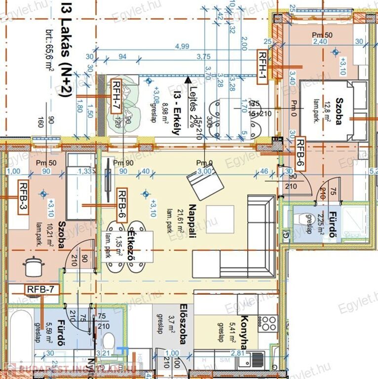 A lakás nettó mérete erkély nélkül: 63 nm.