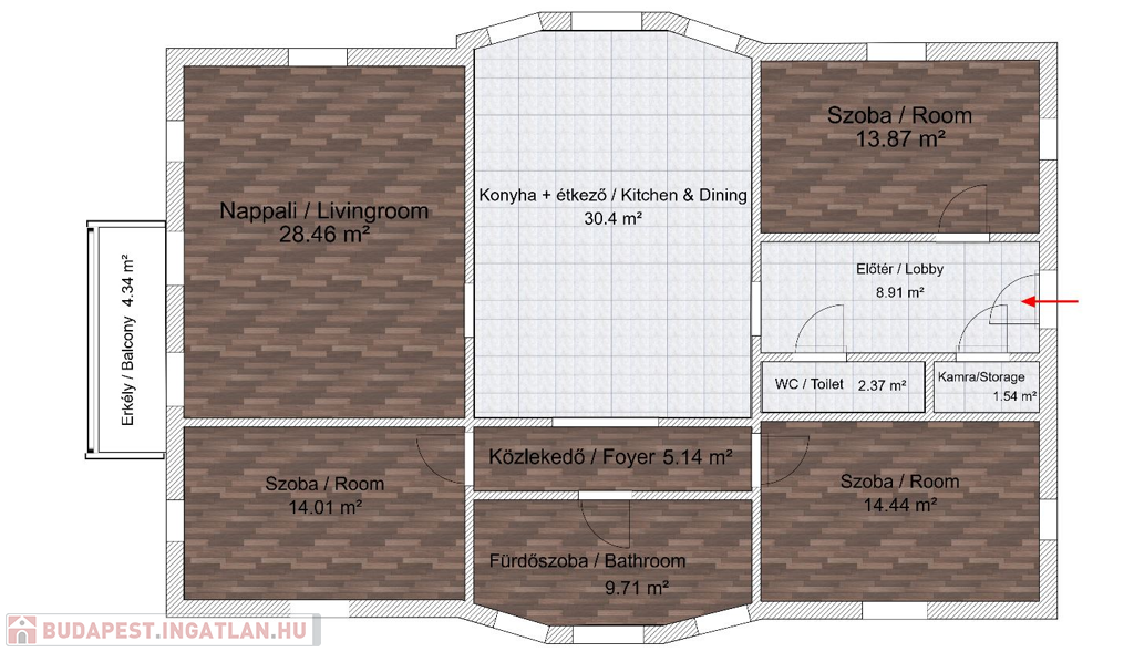 Erkéllyel, tárolóval és 2 fedett parkolóhellyel