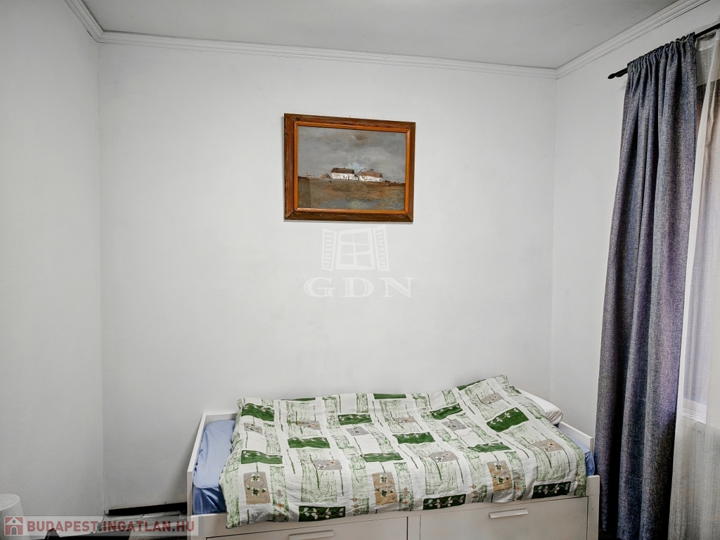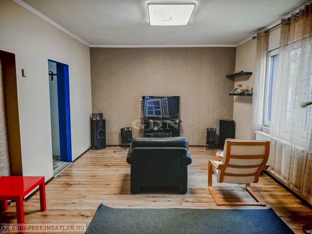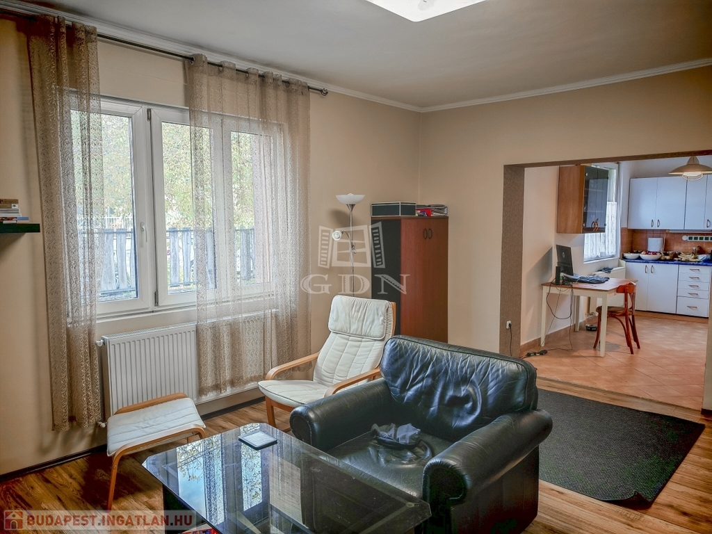 Megvételre kínálok Budapest XVI. kerület Sashalmon, 635 nm-es telken, 3 lakásos épületben, egy nettó 57 nm-es 1 szobás + amerikai konyhás nappali, jó elosztású, szép állapotú földszinti lakást, 74 nm-es saját kertrésszel.
