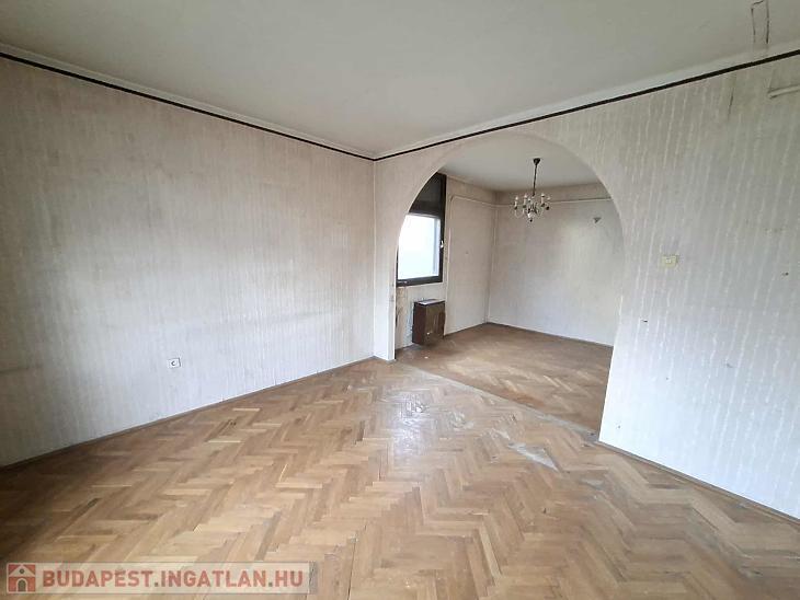 2. emeleti, 73 nm- es esztétikai és műszaki felújítást igénylő, eredetileg 3 szobás lakás. Elosztása kedvező és könnyen alakítható. Jelenleg 2 hálószoba egybe van nyitva, de egy ajtó és egy fal berakásával visszaállítható az eredeti állapot. Fűtése konvektorokkal történik, de van lehetőség az egyedi fűtés kialakítására. A lakás loggiaval és francia erkéllyel felszerelt. Tartozik hozzá egy 12M2-es tároló. A lakás rezsi költsége kedvező, a közös költség tartalmazza a vízfogyasztást. Autóbeálló zárt kapun belül található.