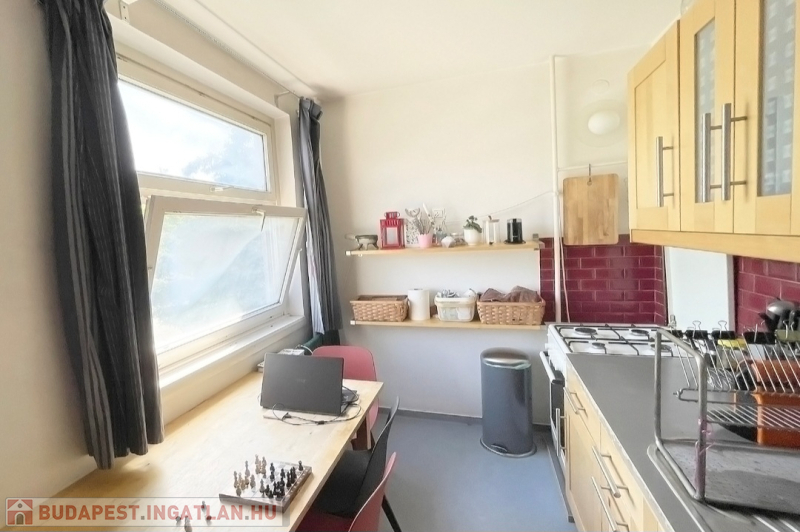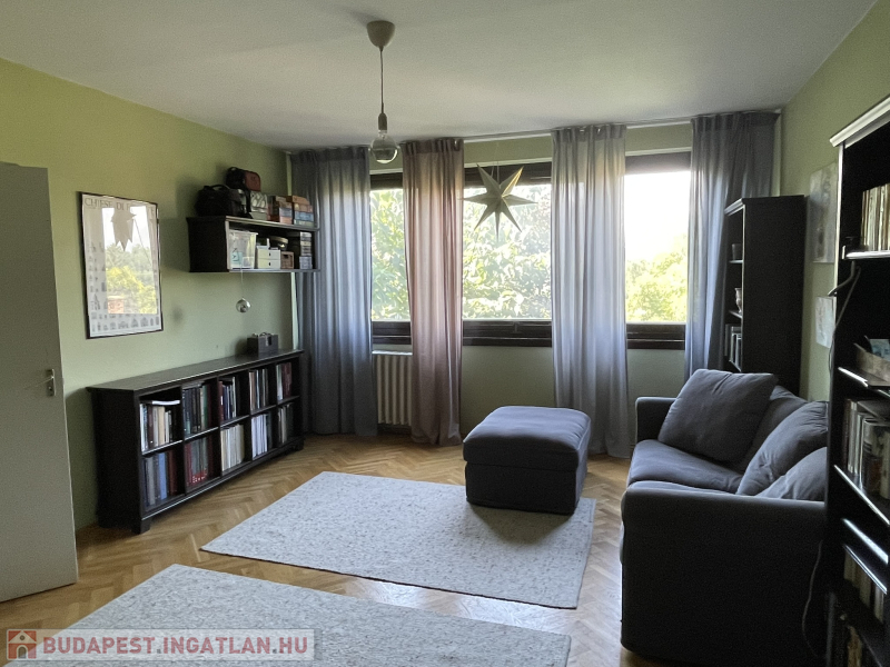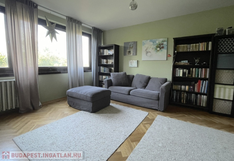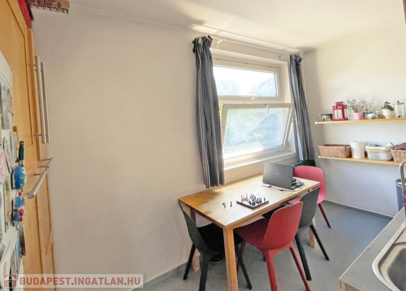 A lakás körbejárható, a helyiségek jól használhatók akár családoknak, akár pároknak vagy idősebbeknek is. A nagy nappali és az egyik hálószoba ablakai, valamint a loggia csendes, zöld kertekre néznek, nem utcafrontra. A másik szoba és a konyha kis előkerttel elválasztott utcára néz.