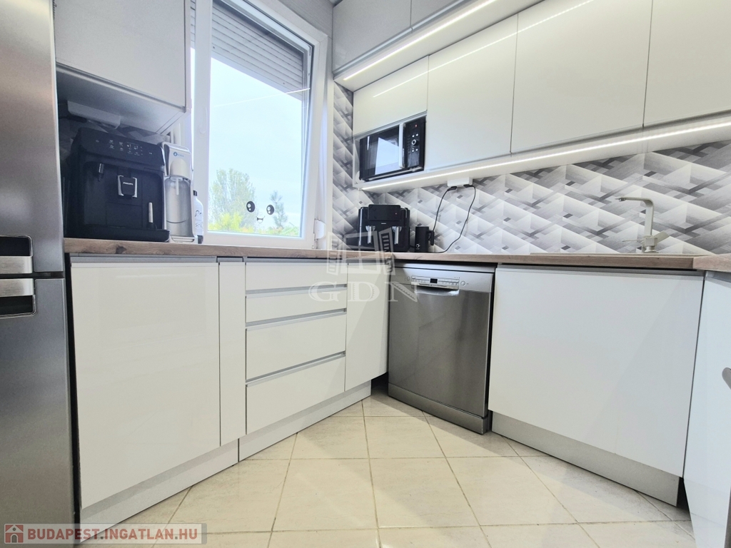 XVI. kerület központi részén, kis lakásszámú, 4 emeletes társasház 2. emeletén eladásra kínálok, egy 80 m2-es, kertre néző-csendes, ablakos konyhás, 2+2 fél szobás, felújított, műszakilag korszerűsített, alacsony fenntartású, klimatizált panellakást.