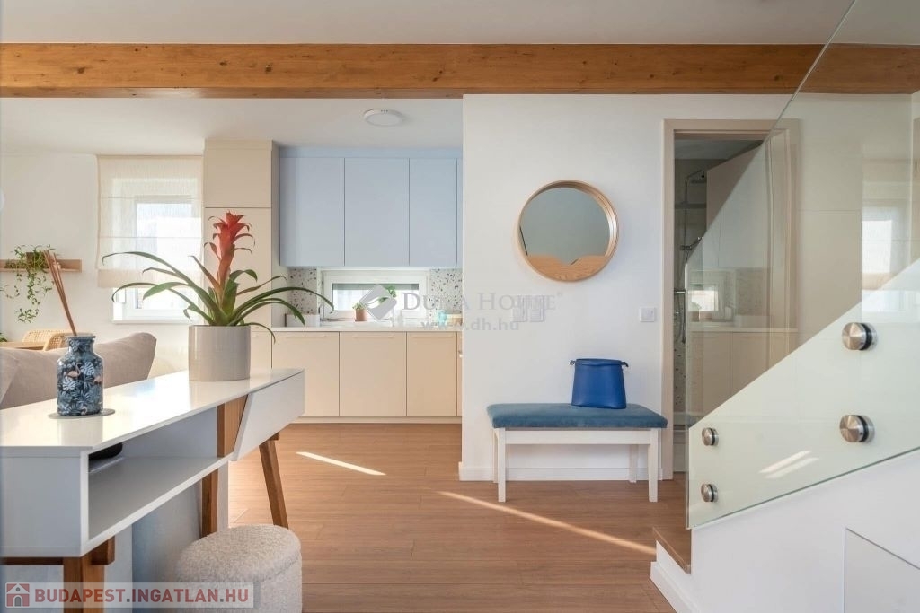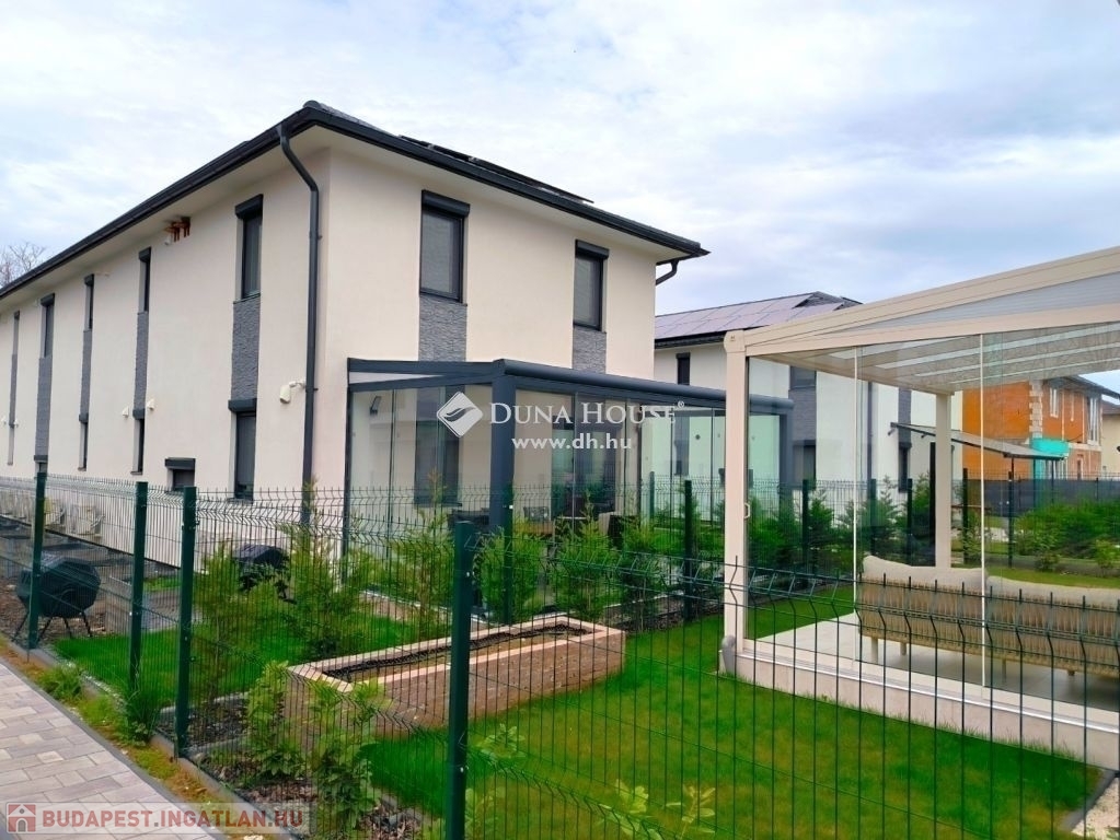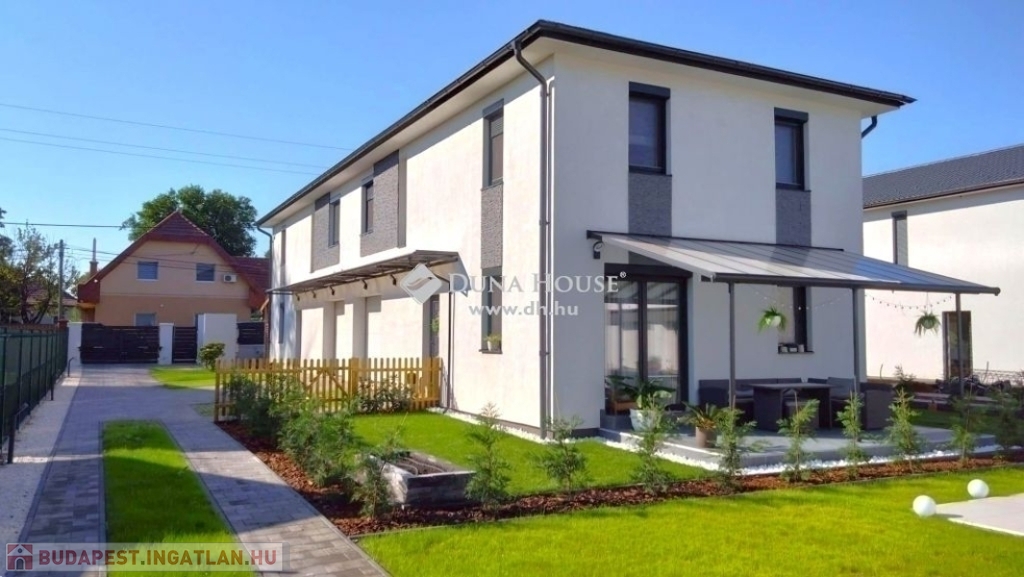 Alapterület: nettó 120 m², teraszok, garázs, tároló, kert nélkül. (Bruttó 145 nm.)Szobák száma: Nappali + 3 hálószoba két szinten.Telek mérete: ~220 m²Állapot: Új építésű.Fűtés: Elektromos (NOBO infra panel), 3 db klímaElhelyezkedés: Budapest XVII. kerület, Rákoscsaba-Újtelep, Naplás-tó közelében.Leírás:Eladó Budapest XVII. kerületének egyik legkedveltebb kertvárosi részén, Rákoscsaba-Újtelepen egy modern, új építésű ingatlan. A Naplás-tó közelsége, a csendes környék és a magas műszaki tartalom teszi igazán különlegessé ezt az ingatlant.Az otthon nappaliból, 3 külön nyíló hálószobából, teraszból és közvetlen kertkapcsolatból áll, mely ideális választás lehet:- fiatal pároknak családalapításhoz,- több gyermekes családoknak,- nyugodt életre vágyó idősebbeknek.Felszereltség, extrák az árban:- Kiépített és beüzemelt napelem rendszer- Norvég NOBO elektromos fűtőpanelek- 3 db hűtő-fűtő klímaberendezés- Teljes értékű riasztórendszer- Kamerás kaputelefon- Motoros garázskapu és kertkapu, távirányítással- Automata öntözőrendszer + füvesített kert- Automata külső világítás- Fedett garázs- Burkolatok és szaniterek még választhatók!Elhelyezkedés, közlekedés:A ház Rákoscsaba-Újtelep csendes utcájában található, a Naplás-tó szomszédságában, családbarát környezetben.- Rákoscsaba-Újtelep vasútállomás – Keleti pályaudvar kb. 19 perc.176E: Örs vezér tere M+H és Rákoscsaba-Újtelep Tóalmás utca között közlekedik, összekötve a városrészt a metróhálózattal.98-as busz: Kőbánya-Kispest M és Rákoscsaba vasútállomás között jár, biztosítva a kapcsolatot a metróval és más városrészekkel.275-ös busz: Rákoscsaba vasútállomás és Piski utca (óvoda) között közlekedik, kiszolgálva a helyi igényeket.297-es busz: Rákoscsaba-Újtelep vasútállomás és Nyeremény utca között jár, segítve a helyi közlekedést.908-as éjszakai busz: Móricz Zsigmond körtér M és Rákoscsaba-Újtelep Tóalmás utca között közlekedik, biztosítva az éjszakai elérhetőséget.