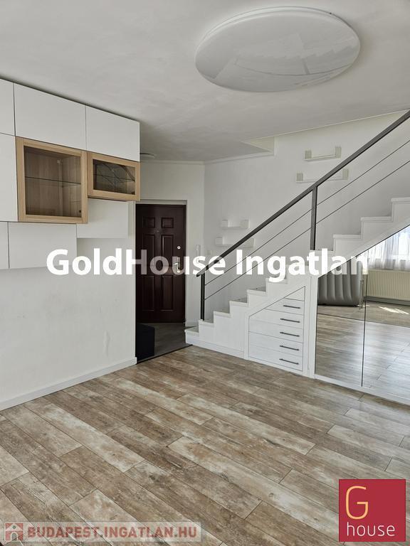 Eladó egy bruttó 54 m^2, nettó 47m^2-es (a tulajdoni lapon a 47m^2 érték szerepel), 2 szobás (amerikai konyhás nappali + hálószoba), 5. emeleti (lift nincs), belső kétszintes (nem galéria), távhős, klimatizált, jó állapotban lévő lakás a 17. kerületben, Rákoskeresztúr központjában a Pesti úton, a képeken látható berendezésekkel.Per és tehermentes, hitelezhető (az OtthonStart Program feltételeinek is megfelel) az ingatlan.