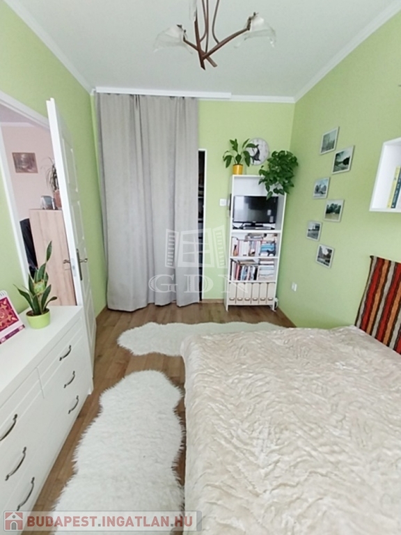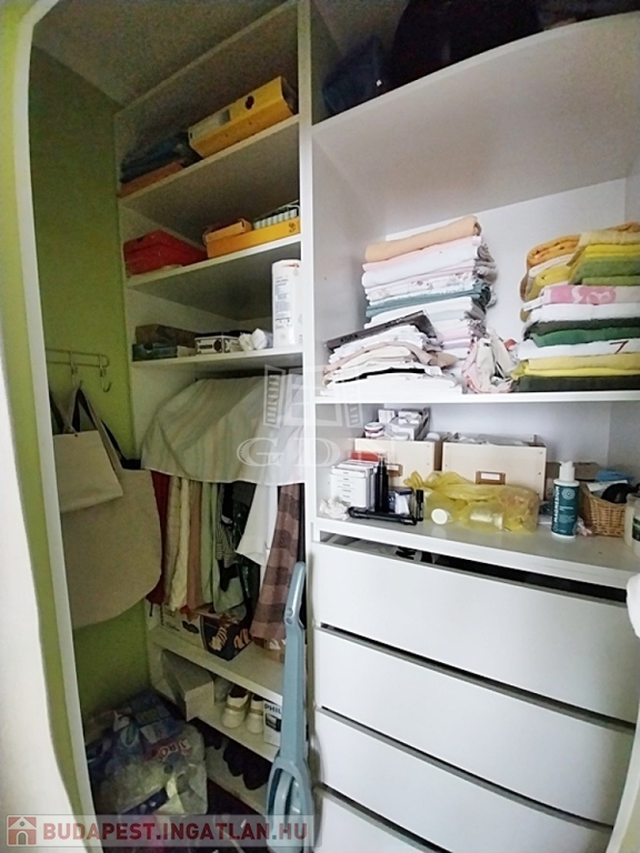 A nappali szobából lehet átlépni a 12.8 nm-es hálószobába, a hálószobához kapcsolódik a 2 nm-es gardrób tároló helyiség.
