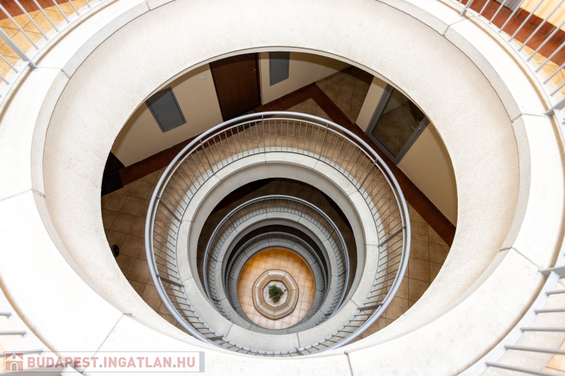 A lakás a csendes Csörgőfa utcára és a belső udvarra néz (észak/déli tájolású).