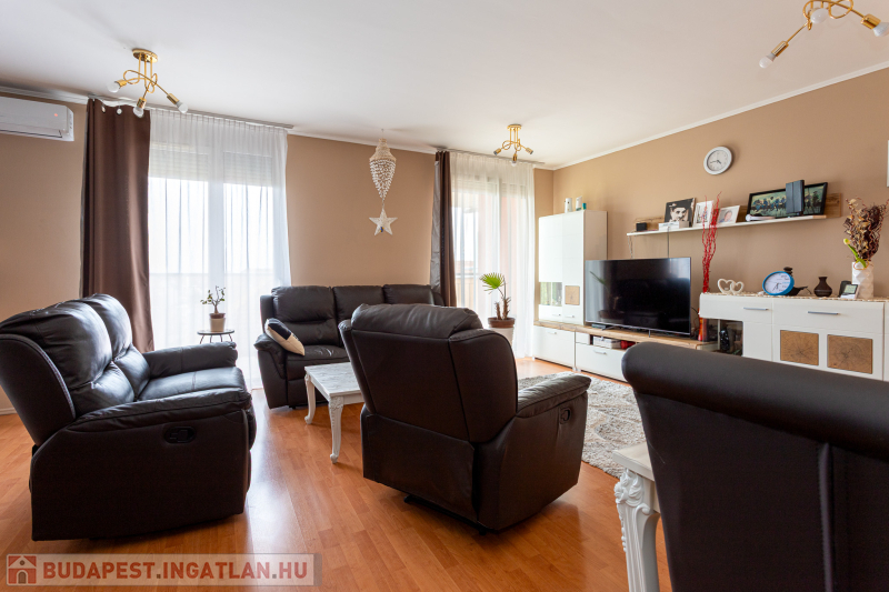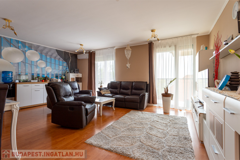 XVIII. Kerület Alacskai úti lakótelepen Zaragóza lakóparkban tégla-építésű társasházban eladó 98m2-es plusz teraszok (38 m2 -es ) nappali- amerikai konyhás, 3 hálószobás, 2 fürdőszobás,4 teraszos, negyedik emeleti (liftes) , belső kétszintes összkomfortos lakás. Fűtése házközponti, egyedi mérős (alacsony költségű).