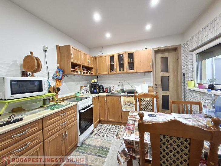 Budapest 18. kerületében, Újpéteritelepen eladó egy földszinti, saját albetéttel rendelkező, 2 szobás, 63nm-es társasházi lakás egy 700 m²-es osztatlan közös telken. A lakás 4 éve teljes körű felújításon esett át, modern, igényes állapotú, rendkívül világos és jó elosztású. A ház új tetőszerkezettel és szigeteléssel rendelkezik, a fűtést kombicirkó biztosítja, továbbá a lakásban két klíma is megtalálható. A beépített terasz tovább növeli a lakótér érzetét és komfortját. A csendes, családi házas környezet és a kiváló műszaki állapot miatt a lakás azonnal költözhető, fiatal pároknak, időseknek vagy befektetésre is ideális választás.