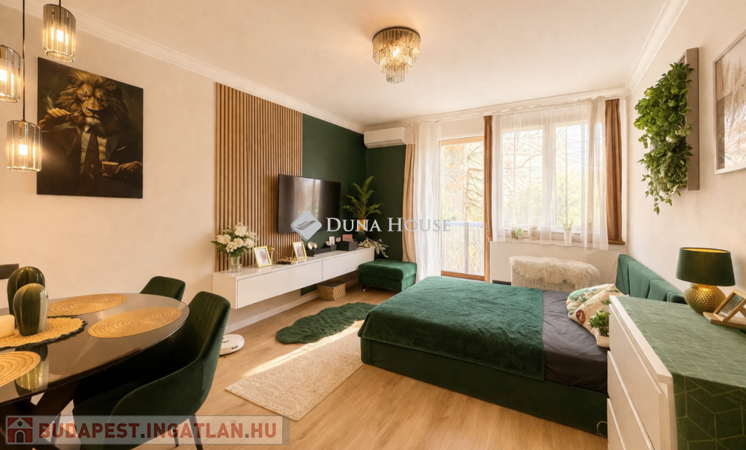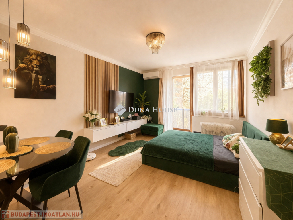 Valódi kis ékszerdoboz a XVIII. kerület szívében . Megvételre kínálok Budapesten a 18. kerület Bókay telepen ,4 emeletes tégla társas ház első emeletén egy 47 nm alapterületű 2 szobás + erkélyes lakást.Az ingatlan 3 éven belül lett korszerűsítve és felújítva . A felújítás során elvégzett munkálatok :a nyílászárók cserélve lettek ( 1 szoba kivételével 5 rétegű hőszigetelt ablakok, abban az 1 szobában 3 rétegű nyílászáró került beszerelésre)Az egész lakásban a burkolatok cseréje és a festés is megtörtént A konyha egyedileg lett készítve mely gépekkel együtt a vételár részét képezi. (ezalól kivételt képez a beépített mikró)A lakás melegéről gázkonvektor gondoskodik, de alternatívaként a tulajdonos beszereltetett egy hűtő-fűtő klímát is.Az ingatlan a lokációt tekintve tökéletes helyen van. Minden amire a minden napokban szükség lehet 2-3 perces sétával elérhető. Extraként említeném meg a háznak saját napelem forrása van így a villamos energia díja rendkívül kedvező. 2 db tároló helység használható , egy az emeleten melyet csak a közvetlen szomszédok használnak, és egy a földszinten a nagyobb dolgok tárolására. ( pld.: bicikli, babakocsi ) Parkolás az utcán díjmentesen elérhető. Ha költségmentes ingatlant keres rövid költözési határidővel ne maradjon le erről a kis ékszerdobozról. Amennyiben hirdetésem felkeltette az érdeklődését, várom megtisztelő hívását a hét bármely napján.