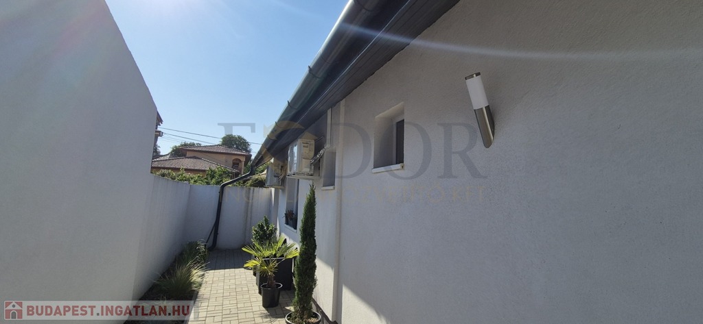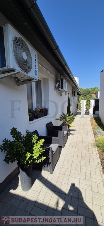 Budapest XVIII. kerületének csendes, kertvárosi részén, Lónyaytelepen, a Széchenyi utcában kínálunk megvételre egy újszerű állapotú, földszintes, beépített tetőteres sorházi lakást, amely egy 39 m²-es saját telekrésszel is rendelkezik.