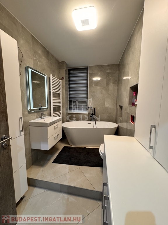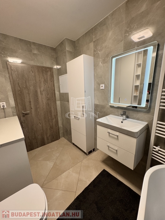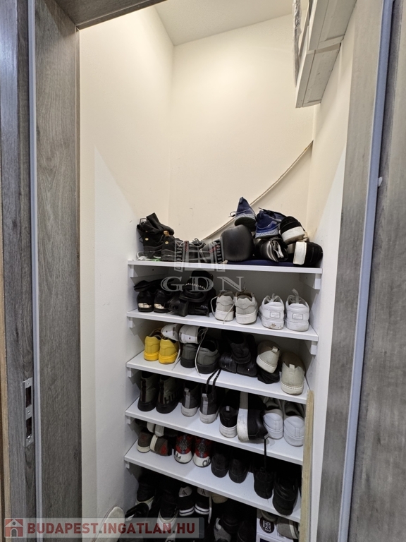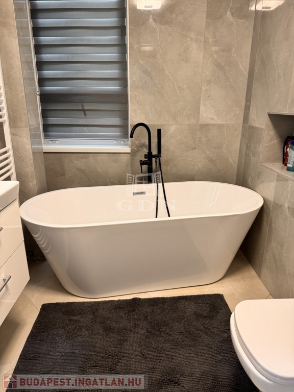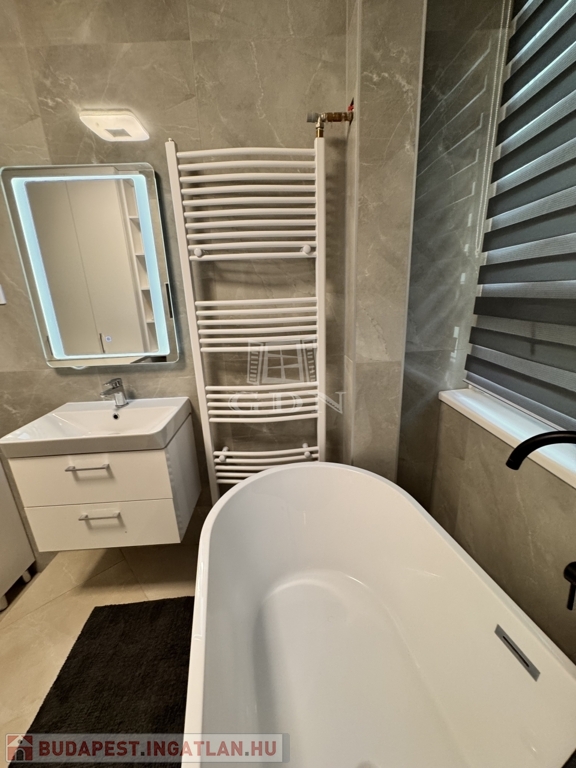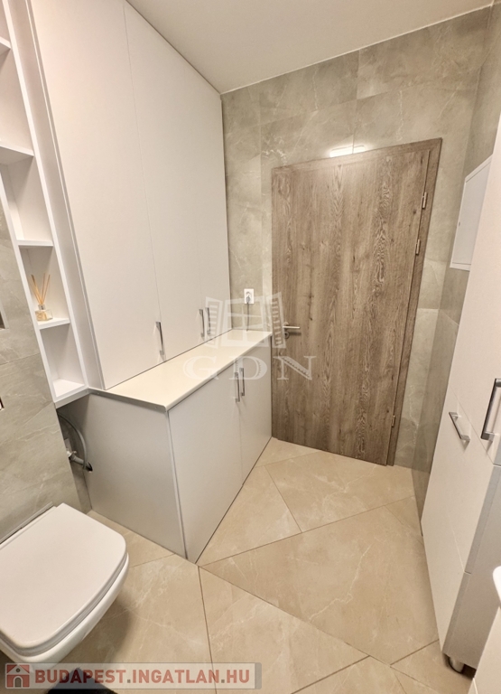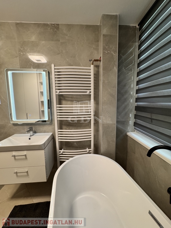 A korábbi konyha helyén egy teljes értékű, modern fürdőszoba kapott helyet, emellett két külön tárolóhelyiség is rendelkezésre áll, ami ritka és rendkívül praktikus.