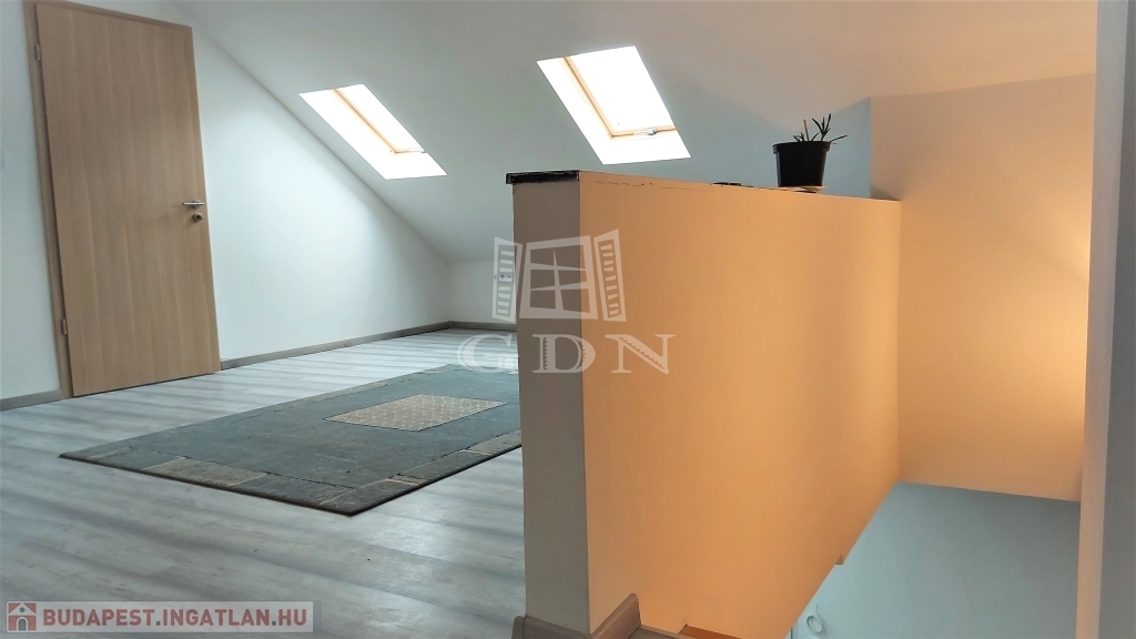 A belső kétszintes lakásba lépve a földszinten, az előszobából, lépcső vezet az emeletre, majd tovább haladva az ebédlős konyhából nyílik a felújított, zuhanyzós fürdő, illetve egy kamra, ahonnan a pincébe juthatunk.Az emeleten, nagy nappaliból nyílik a két szoba és a kádas fürdőszoba.