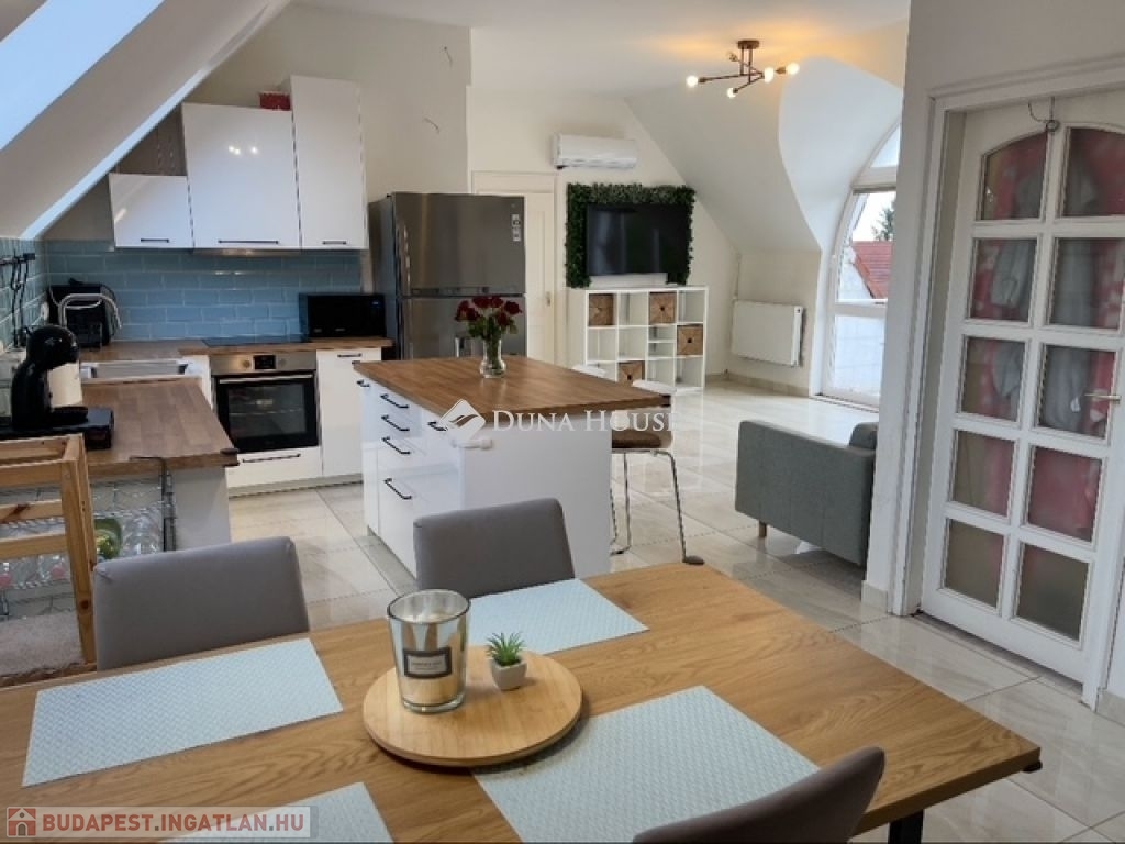 Kivételes lehetőség Budapest 18. kerület kertvárosi részén !3 lakásos társasházban kínálom megvételre ezt a 83 nm alapterülettel rendelkező , tetőtéri lakás Budapest XVIII. kerület Újpéteri részén. Főbb jellemzők:Alapterület: 83 m²Elrendezés:-amerikai konyhás nappali- 2 szoba-fürdőszoba +wc-wc-gardrób szoba Erkély: 4 m², délnyugati tájolású1 db autó beállási lehetőség az udvarra .Kert használatPrivát, zárt lépcsőház + extra tároló + padlásA lakás fűtését és melegvíz ellátását gázcirkó biztosítja , radiátorokon történő hőleadással ( 2025 ben lett korszerűsítve )A lakásban 1 db klíma került beszerelésreA modern kialakítású beépített gépiesített konyhabútor a vételár részét képezi. Csendes, családbarát környék, barátságos lakóközösségA társasházban 2 lakás és 1 üzlethelyiség találhatóKözelben: bevásárlási lehetőségek, óvoda, iskola, orvosi rendelőAmennyiben hirdetésem felkeltette érdeklődését, várom megtisztelő hívását.