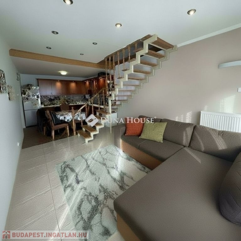Eladó ez a belső kétszintes lakás egy 2003-ban épült, 20 lakásos porotherm vázkerámiás társasház negyedik emeletén.A lakás három szobás, de akár négy szobássá is alakítható, így rugalmasan igazítható a család igényeihez. A 10 cm-es belső válaszfalak lehetőséget adnak a terek egyedi kialakítására.Földszint (52 m2) :Előtér a bejárattal szemben praktikus gardróbszekrény gondoskodik a kabátok és lábbelik rendszerezéséről.Jobbra nyílik a fürdőszoba, külön wc.Az előszobából a tágas konyhaétkezőbe érkezünk, innen jutunk tovább a nagy nappaliba, amelyhez egy részben fallal elválasztott, külön nyíló szoba is kapcsolódik.Galéria (43 m2):A felső szinten a belmagasság minden helyiségben 2,80 m felett van, így a terek itt is tágasak és kényelmesek. A lépcsőn felérve a galéria térbe érkezünk, ahol egy dolgozószoba kapott helyet. Mellette található egy fallal részben leválasztott szobarész üvegtégla fallal, valamint egy külön hálószoba és egy praktikus gardrób is.A lakásban többrétegű műanyag nyílászárók biztosítják a csendet és a hőszigetelést, elektromos redőnyökkel felszerelve.Az emeleten található tetőablak is elektromosan nyitható.A belmagasság mindenhol 2,80 m felett van, így a terek tágasak és világosak, a galéria szinten is kellemes légérzetet biztosítva.A ház központi fűtéssel rendelkezik, egyedi mérőkkel, így a fogyasztás könnyen ellenőrizhető.Teremgarázs beálló (20 m2) + tároló (4 m2):A vételár tartalmaz egy teremgarázs kocsibeállót, valamint a mögötte található tárolót, amely praktikus pluszt jelent a mindennapokban.A lakás a negyedik emeleten található, de lifttel is könnyen megközelíthető; a lift modern és újszerű állapotban van.A társasházhoz egy hatalmas, füvesített belső kert tartozik grillsütővel, amely ideális a pihenésre és a baráti összejövetelekre.Ez a lakás ideális választás azoknak, akik szeretik a tágas tereket és a gyönyörű napfelkeltéket. A ház kellemes, barátságos lakóközösséggel rendelkezik. Az ingatlan környéke kiváló infrastruktúrájú: a közelben buszmegállók, boltok, iskolák, óvodák és bölcsődék találhatók. Számos kikapcsolódási lehetőség és vendéglátó egység is könnyen elérhető.