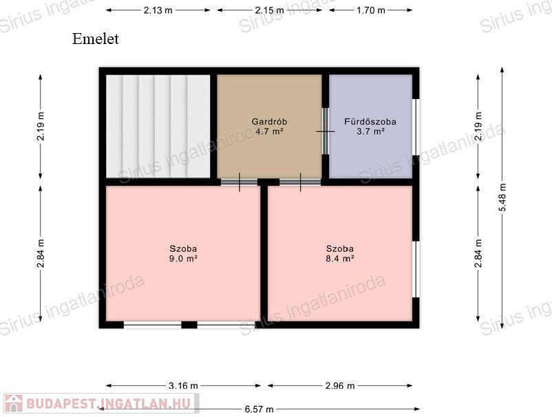 Elosztása kiváló, minden helyisége külön nyílik és rendkívül világos.
