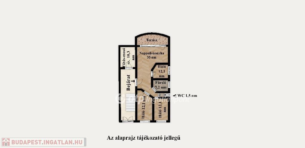 A lakásba belépve tágas, napfényes terek fogadják a látogatót. Három külön nyíló hálószobája ideális választás családok számára, míg az egybenyitott nappali?étkező?konyha a mindennapok kényelmes, központi életterét adja. A sarokkádas fürdőszoba pedig a pihenést és feltöltődést szolgálja.