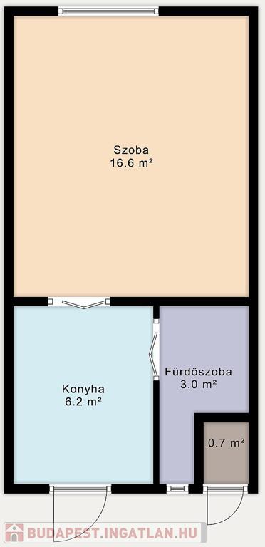 Az ingatlan egy szobából, egy kis konyharészből és fürdőből áll, ideális lehet első lakásnak, egyedülállók számára, vagy akár befektetési célra is – például bérbeadásra. A fűtés gázkonvektorral történik, a melegvizet Ariston típusú villanybojler biztosítja. A nyári meleg ellen klímaberendezés nyújt kellemes hőmérsékletet, az ablakokon redőnyök gondoskodnak a megfelelő árnyékolásról és privát szféráról.