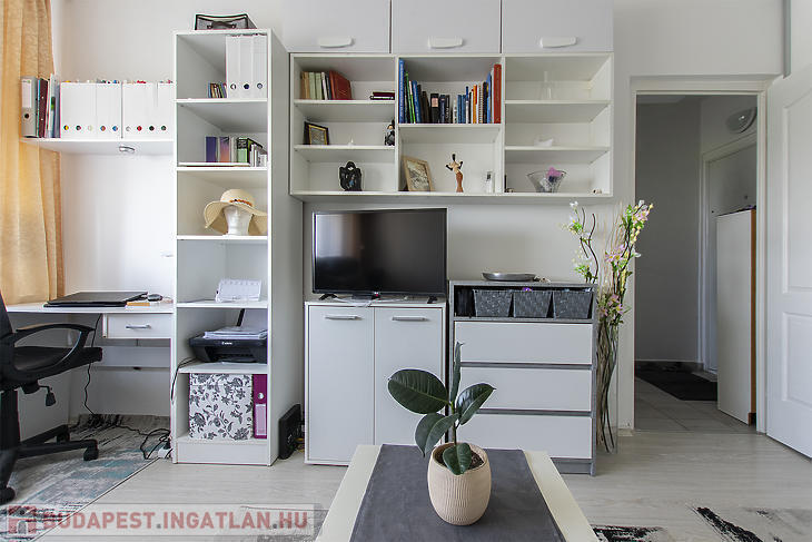 A lakás egyik különlegessége az egyedileg, asztalos által készített beépített szekrényrendszer és konyhabútor, amelyek a vételár részét képezik, így az új tulajdonos azonnal egy jól felszerelt, rendezett otthonba költözhet.