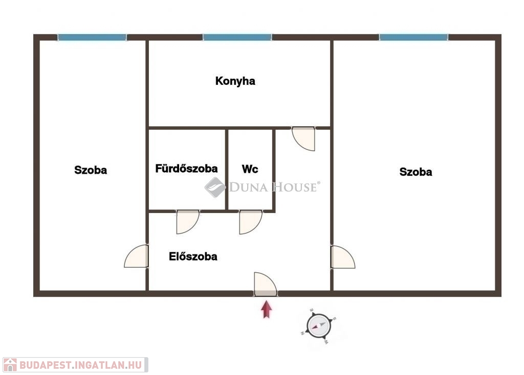 Az ingatlanban két különnyíló, tágas szoba, egy ablakos, étkezéshez is elegendő teret kínáló konyha, egy fürdőszoba, külön wc, és egy előszoba helyiségek kaptak helyet. Elrendezése kiváló, a két tágas szoba a lakás két ellenkező végén található, így áthallás nincsen közöttük, ennek köszönhetően például szobánként is bérbe adható, illetve két különböző napirendet követő családtag számára is ideális.