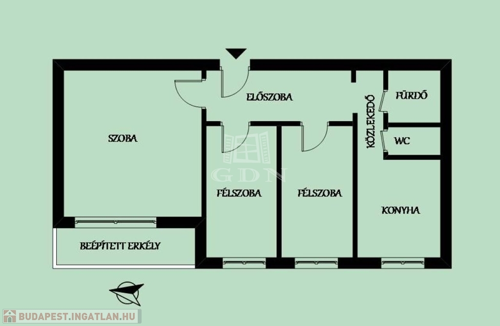 56 nm, 1+2 szoba, beépített erkély, 54.9 MFt.