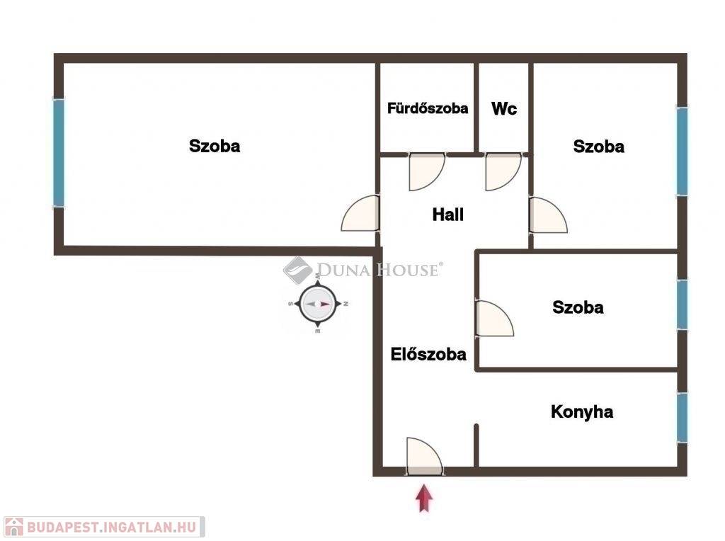 Az ingatlanban egy tágas nappaliszoba, két hálószoba, egy ablakos konyha, egy fürdőszoba, és egy külön wc helyiségek kaptak helyet, melyek mindegyike külön bejáratú, az előszobából, és az ahhoz csatlakozó hallból nyílik. Kiváló elrendezése okán családosok számára is nagyon jó választás, kényelmesen belakható életteret biztosít.