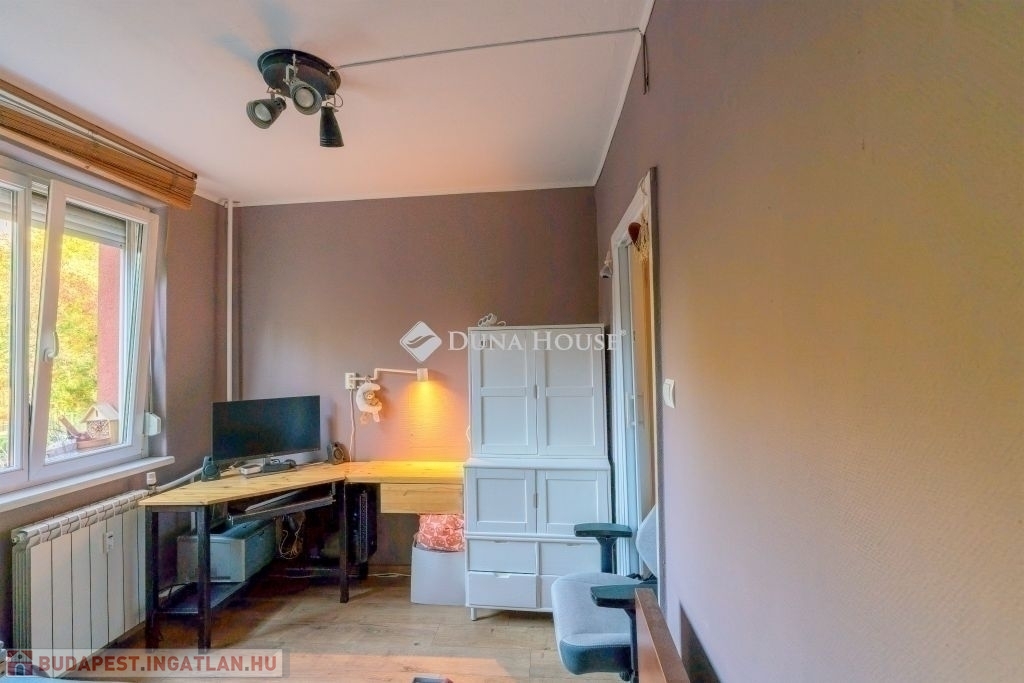 Ablakai inkább már emeleti magasságban vannak, a kilátás az egyik irányban előkerten keresztül mellékutcára, míg a másik irányban csendes, kertes, parkos területre nyílik.