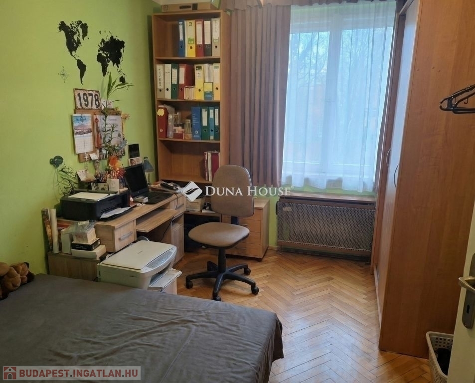 Főbb jellemzők: Északkeleti tájolású nappali és hálószoba, utcai kilátással- Délnyugati tájolású konyha és szoba, parkra néző zöld panorámával- Északkeleti fekvésű erkély- Tágas előszoba - A hátsó közlekedő egy kisebb beépített szekrényt is tartalmaz- 2 oldalt bepolcozott kamra (kb. 2 m²)- Szobákban eredeti, jó állapotú parketta, egyéb helyiségekben linóleum- Normál és éjszakai áram- Melegvíz-ellátás külön bojlerekkel (konyha, fürdő)- A vízdíj a közös költség része, korlátlan használattal