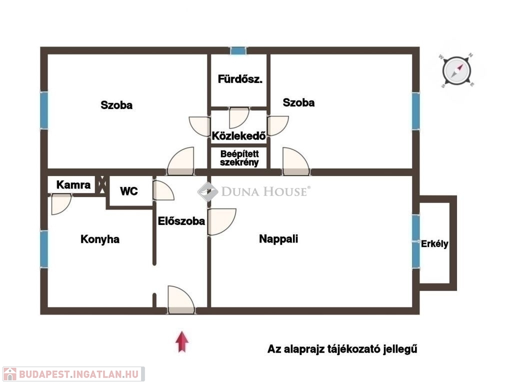 A lakás jó fényviszonyokkal rendelkezik, köszönhetően a kétoldali fekvésnek. A helyiségek arányos méretűek, az elrendezés jól alakítható, így családi otthonnak vagy akár otthoni munkavégzésre is ideális.A fűtést gázkonvektorok biztosítják, melyek lehetővé teszik az egyedi, költséghatékony szabályozást. Az erkély kellemes kültéri életteret nyújt, legyen szó reggeli kávézásról vagy esti pihenésről.A nappali, az egyik szoba, a konyha és a WC az előszobából nyílik, a hálószoba a nappaliból közelíthető meg. A fürdőszoba a hálószoba és a 3. szoba közötti kisebb közlekedőből érhető el.