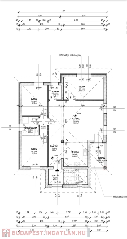 • amerikai konyhás nappali + 3 külön nyíló hálószoba