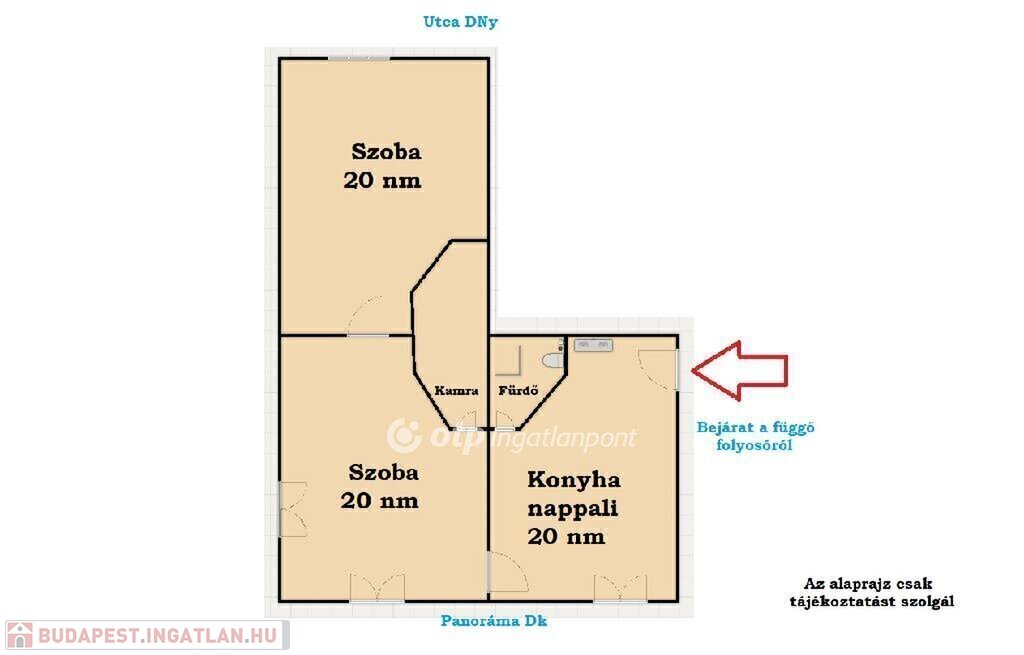 A lakás függőfolyosóról közelíthető meg, így a bejárat előtt egy panorámás külső tér is rendelkezésre áll, és a két francia erkély, a nagy méretű ablakok egész nap kellemes természetes fényt biztosítanak.