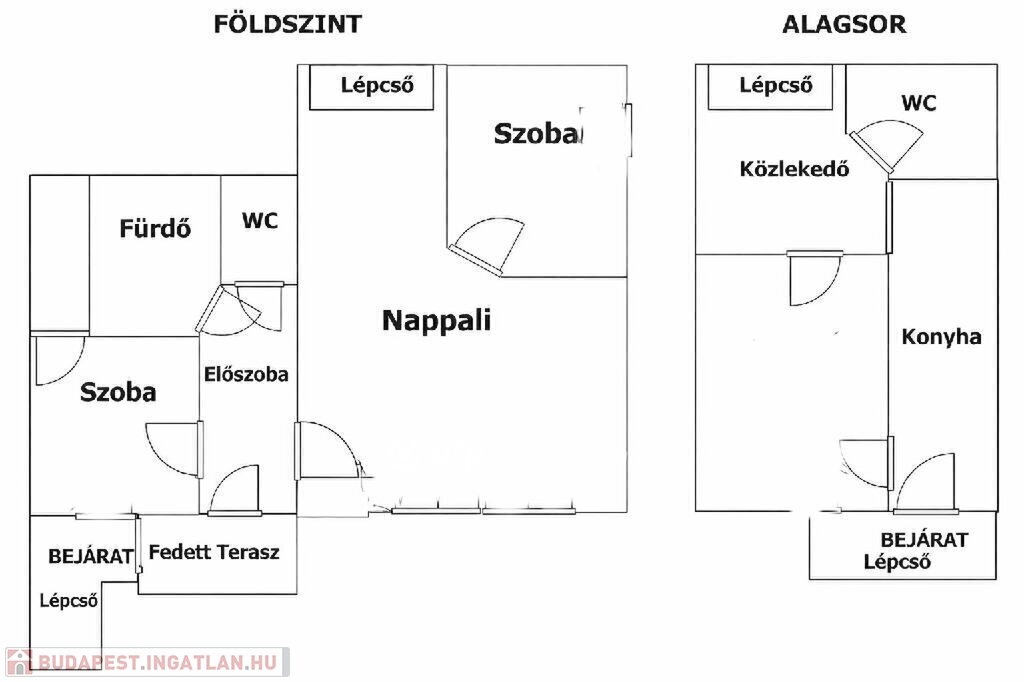Az alsó szinten egy szoba vagy étkező, konyha, WC, valamint közvetlen kijárat a kertbe.