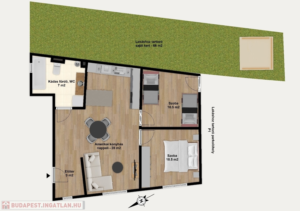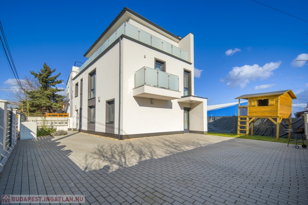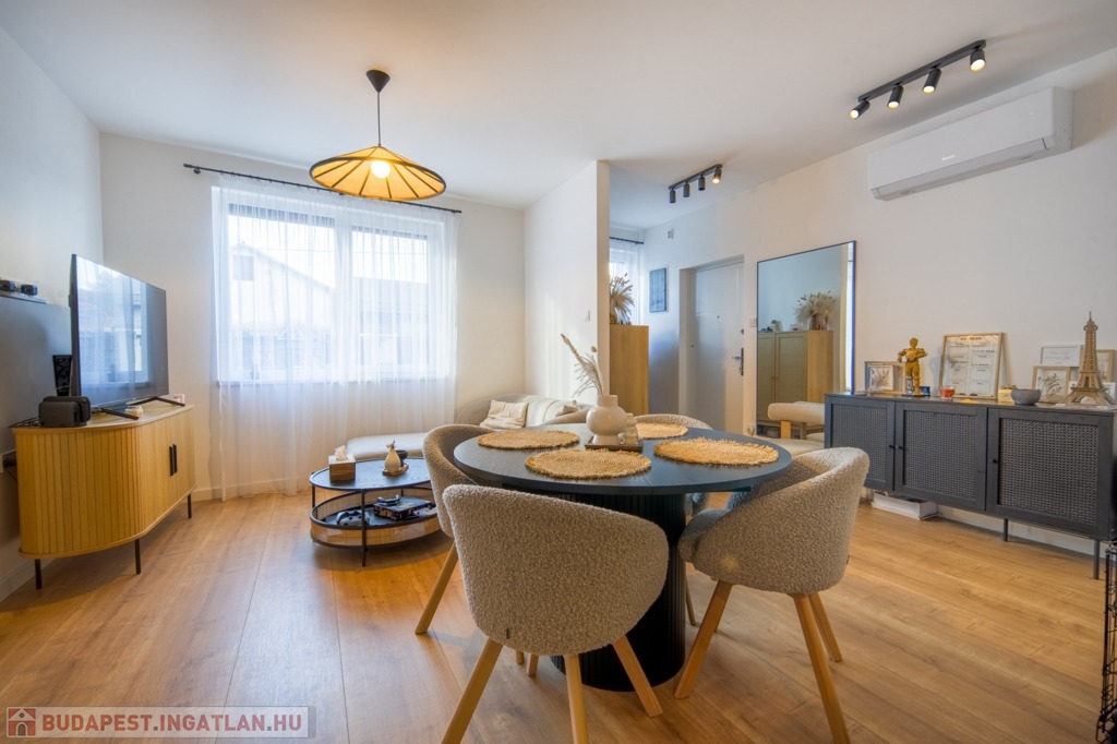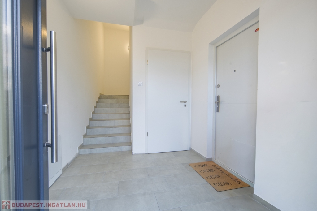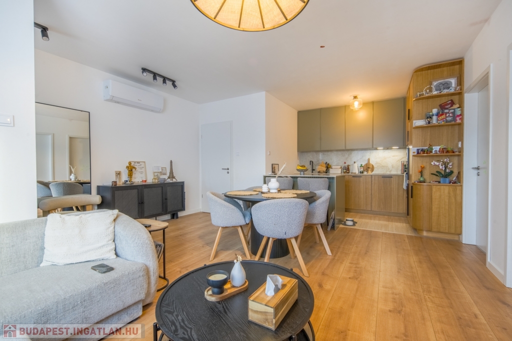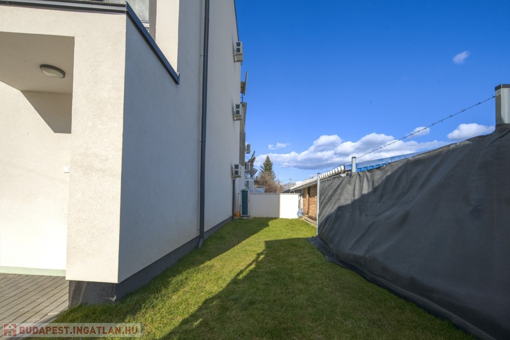 3 szobás, 59 m2-es, földszinti, 66 m2 saját kertkapcsolattal és kizárólagos használatú kültéri parkolóhellyel rendelkező, kiváló állapotú lakás eladó Budafokon, 2023-ban épült, 3 lakásos társasházban. Modern, ízléses anyaghasználata, hőszivattyús fűtése és a kertkapcsolat ritkán látható kombináció, családosoknak is kiváló választás lehet - az épületben gáz nincs.