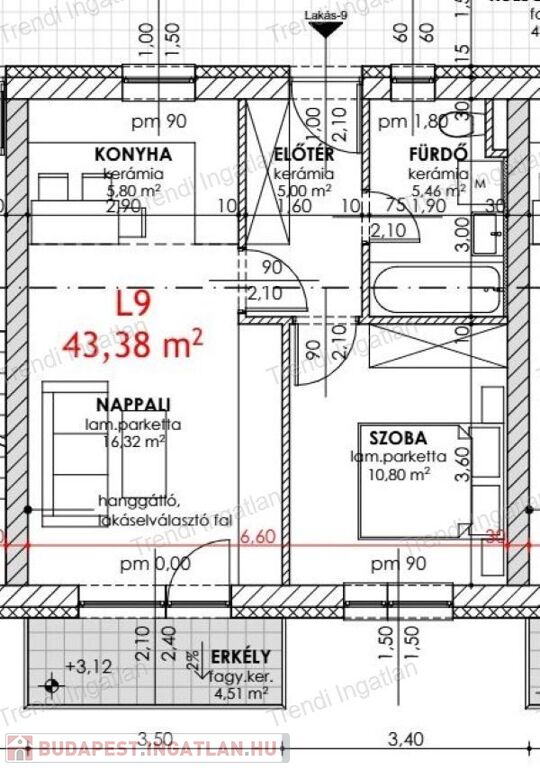 A meghirdetett 1. emeleten található 43,38 nm-es ingatlanban amerikai konyhás nappali, szoba, fürdőszoba, előtér kerül kialakításra. A nappaliból 4,51 nm-es erkély nyílik.