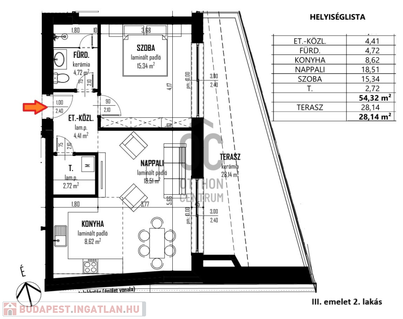 III. emelet 2. lakás 54 nm + 28 nm terasz:
