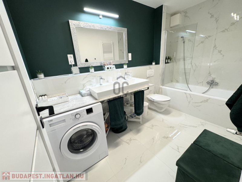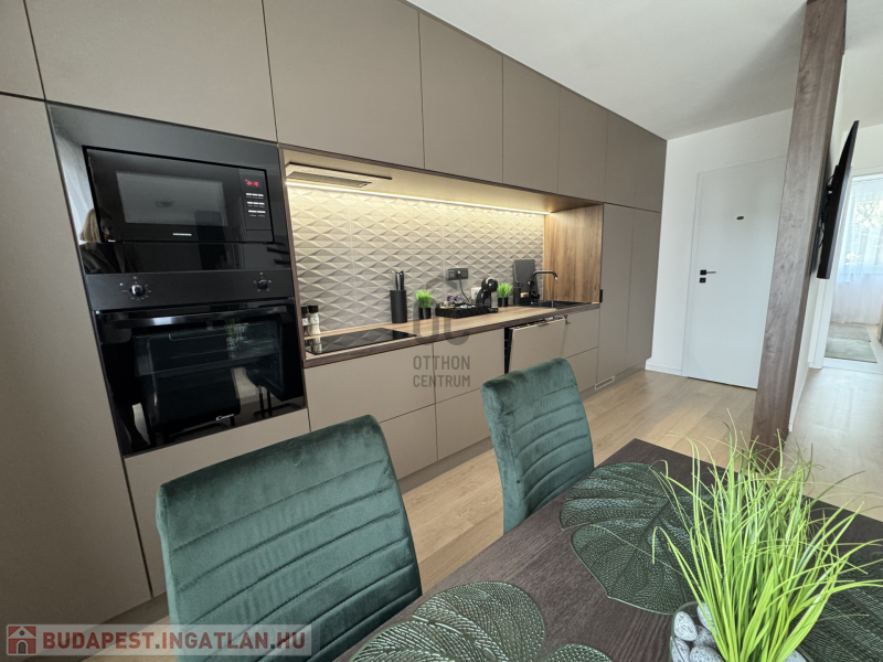 Bútorozott és gépesített: Minőségi bútorokkal és korszerű háztartási gépekkel felszerelt lakás.