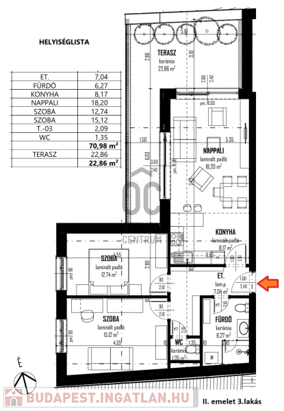 II. emelet 3. lakás 71 nm + 23 nm terasz: