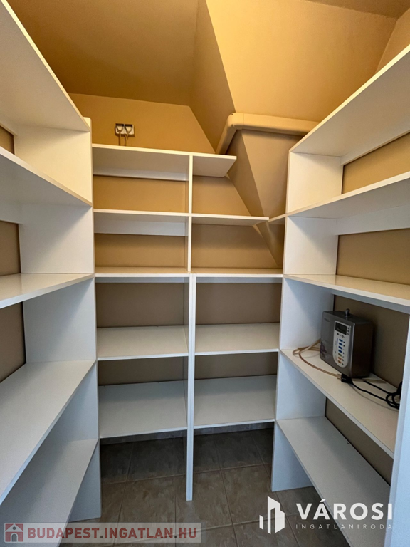 - Beépített szekrények és egy külön gardrób szolgálják az optimális tárolást
