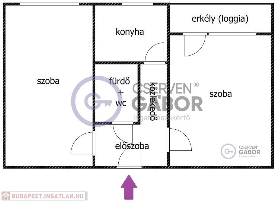 Elrendezés szerint az 51 m2 magába foglal két tágas szobát, egy normálméretű konyhát, egy előszobát, és egy innen nyíló zuhanyzós fürdőt, ami a WC-t is magában foglalja. A szélesebb szobához tartozik a már említett --erkély, ami valójában lodzsa, így zárt oldalakkal és födémmel rendelkezik. A lodzsa, a praktikum jegyében, ablakokkal került lezárásra, így télen-nyáron használható, akár kiülni, akár ruhákat teregetni, vagy akármire is.