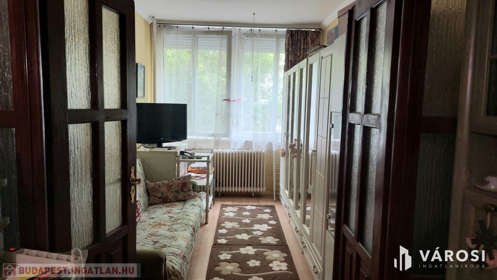 A csúsztatott zsaluzással épült lakásban 2 különnyíló szoba + konyha + fürdő + WC + előszoba található. A lakás részben felújított, keleti fekvésű, csendes, zöld parkra néző kilátással. Fűtés: házközponti fűtés radiátorokkal. A lakás külső nyílászáróinak cseréje , illetve a szobák és nappali burkolatának laminált padlóra történő cseréjére 2020-ban került sor.