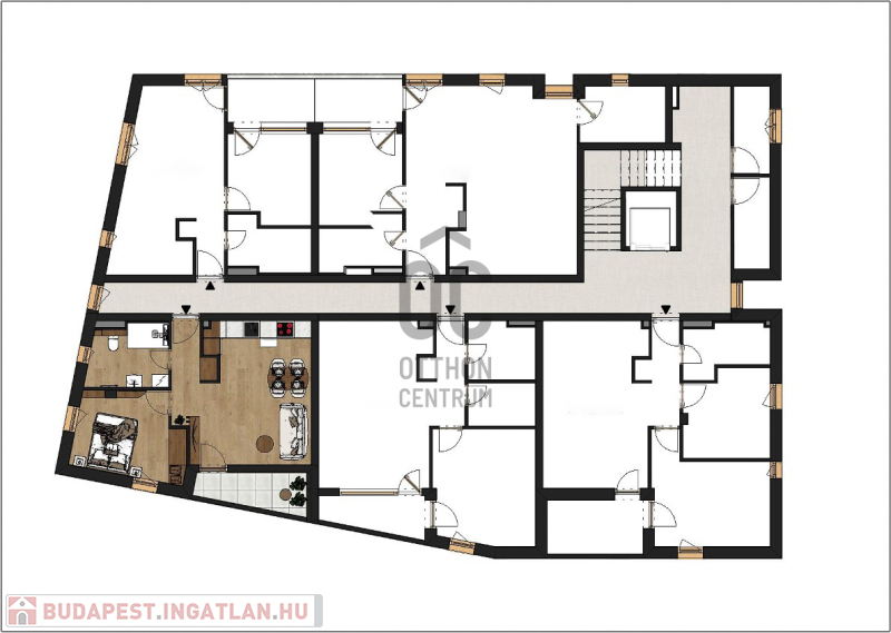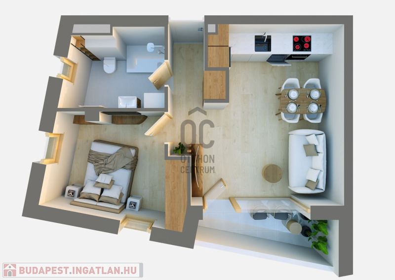 Ez a 2. emeleti lakás 40,68 nm-es, nappali-étkező-konyha +1 szobás, 3,8nm-es loggával.